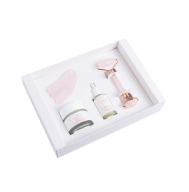 • Gua Sha cuarzo rosa:Ideal para masajear la zona contorno de ojos con los beneficios del roller.